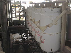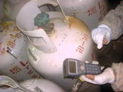 不合格容器及び廃却容器の廃棄処理を依頼された容器について、 ・バルクの引き取り→残ガス回収→バルクの洗浄→くず化 CNG容器のくず化処理 ・容器の引き取り→残ガス燃焼→バルブ取り外し→くず化 その他、一般高圧ガス容器くず化処理もしています。 |